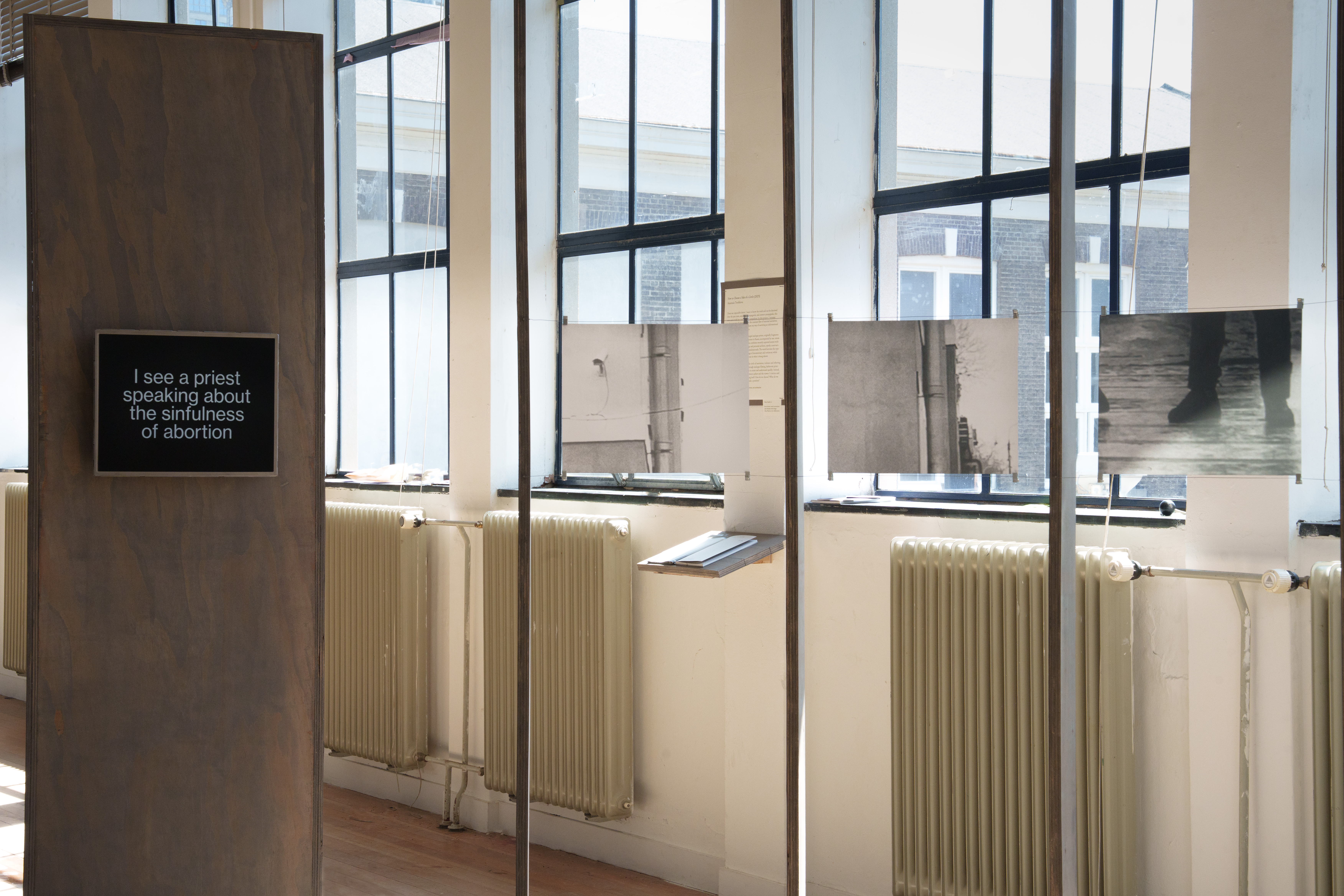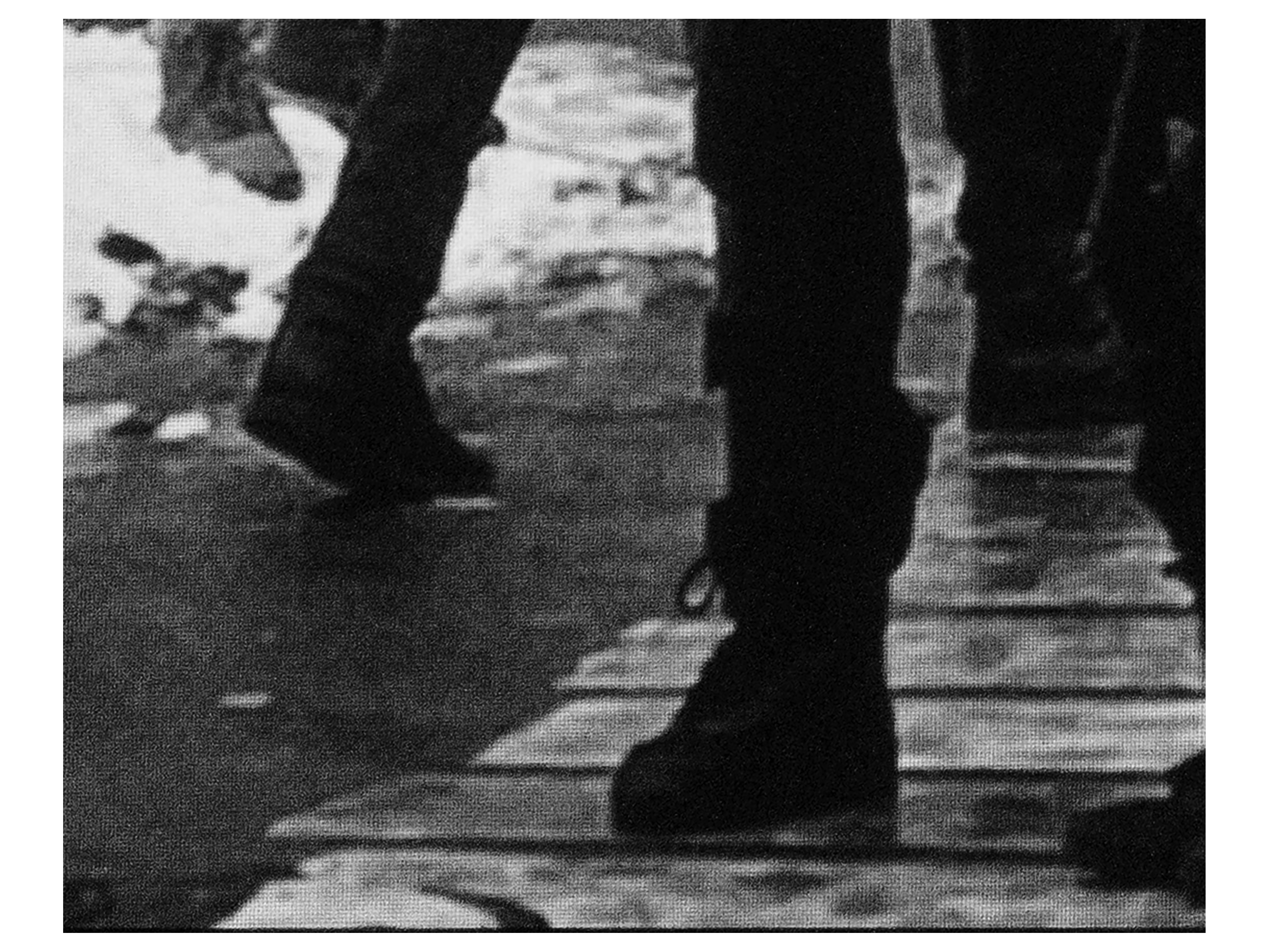 The installation consists of 24 enlarged analogue prints, originally fragments of a single photo taken during a protest in Russia, accompanied by one 16mm video and text animation. The video combines recently captured scenes with digitally manipulated found footage and personal archives, openly constructing and deconstructing meaning simultaneously. The work borrows the typically objective and assertive language of documentary and testimony while subtly undermining the viewer’s trust in what is being shown.